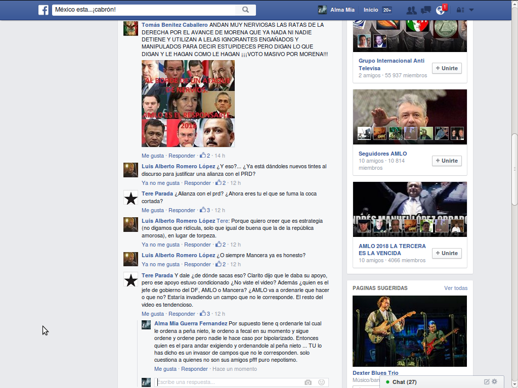 mujeres”. Se cuelan en los muros de sus objetivos y sacan fotos de pantallas de las conversaciones con otros usuarios y las publican en los grupos donde se concentran los cuales pretenden adjudicarse, por lo regular son grupos en donde están agregados millones de usuarios pero siempre terminan por lograr que los grupos sean eliminados.